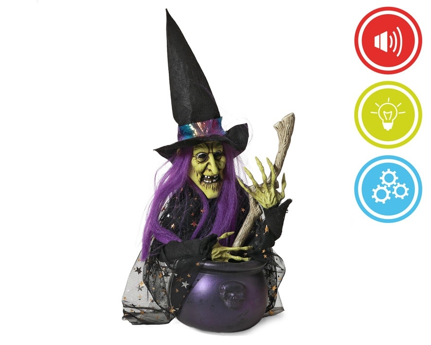 Bruxa no Caldeirão 45cm com Som, Movimento e Luz