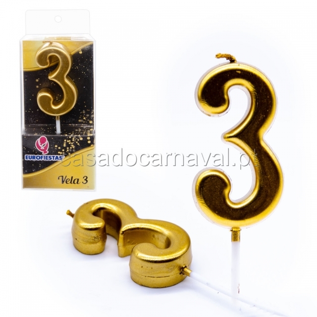 Vela Aniversario Numero 3 Dourado