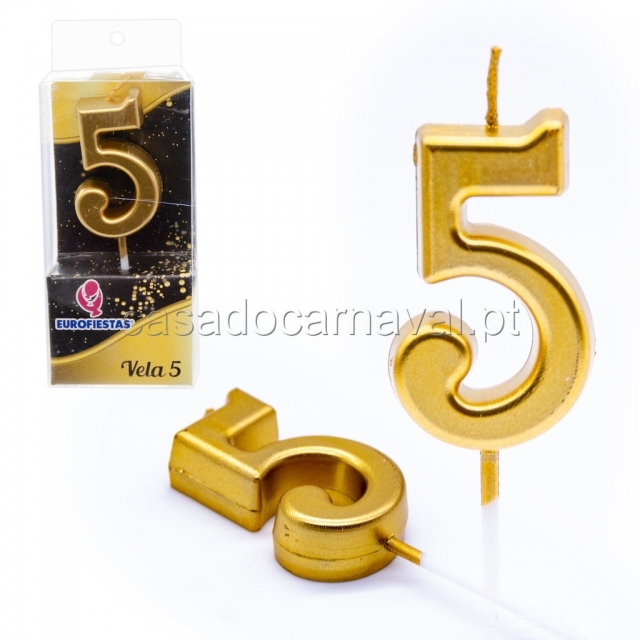Vela Aniversario Numero 5 Dourado