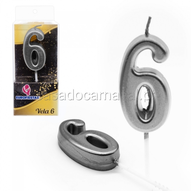 Vela Aniversario Numero 6 Prateada