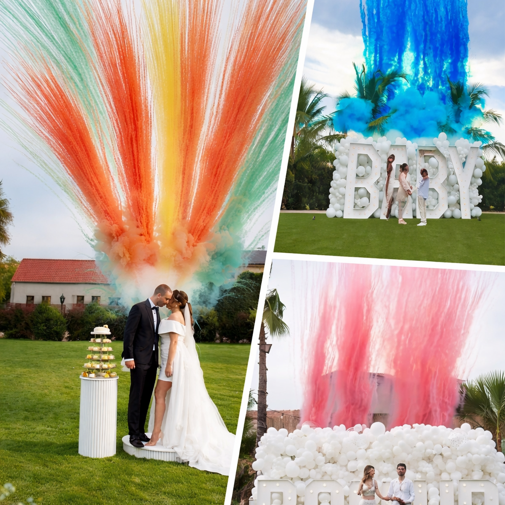 Disparos de Fumos Coloridos para Casamentos e Chá Revelação